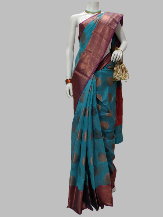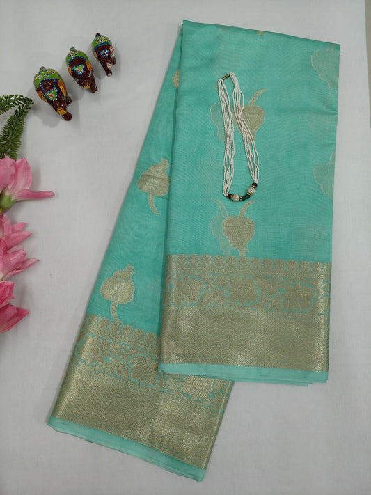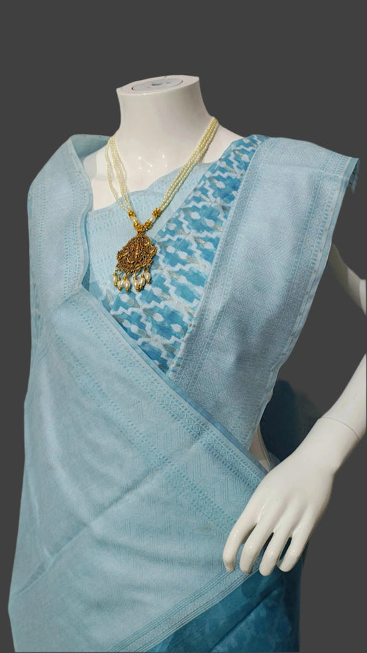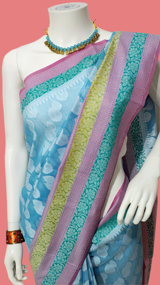 Cotton Silk Sky Blue Banarasi Saree With Unstitched Blouse
