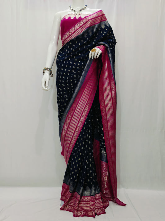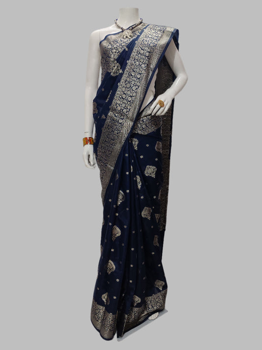 Georgette Silk Navy Blue Banarasi Saree With Unstitched Blouse
