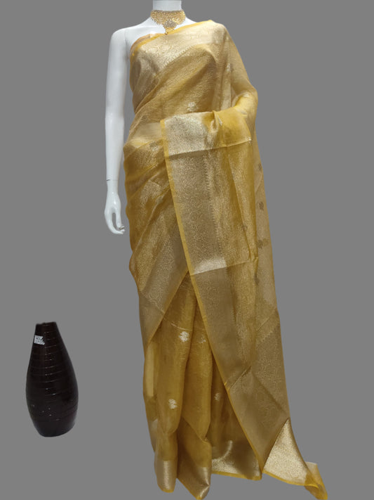 Crush Tissue Yellow Banarasi Saree With Unstitched Blouse
