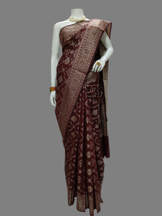 Cotton Silk Brown Banarasi Saree With Unstitched Blouse