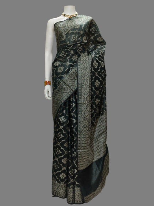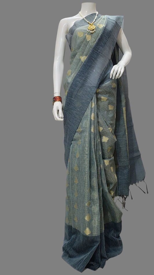 Cotton Silk Grey Banarasi Saree With Unstitched Blouse