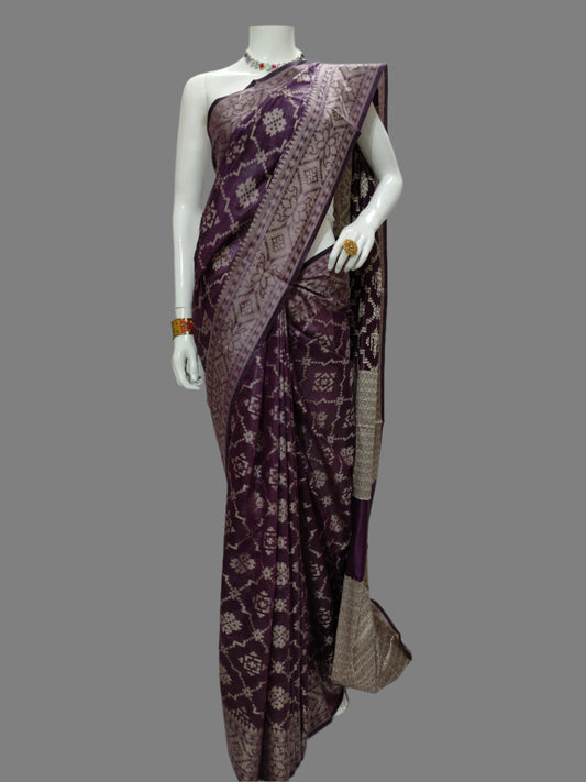 Cotton Silk Purple Banarasi Saree With Unstitched Blouse