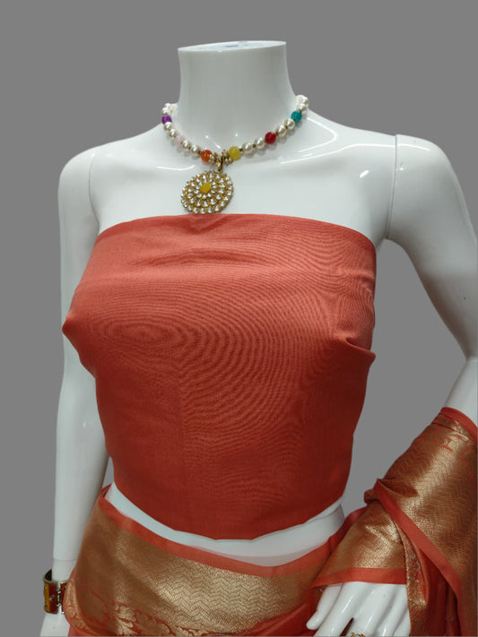 Cotton Silk Peach color Banarasi Saree With Unstitched Blouse