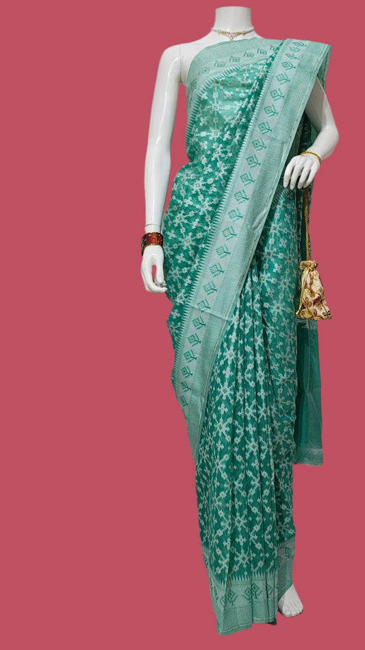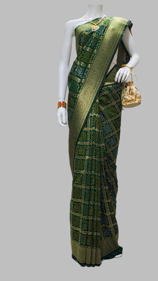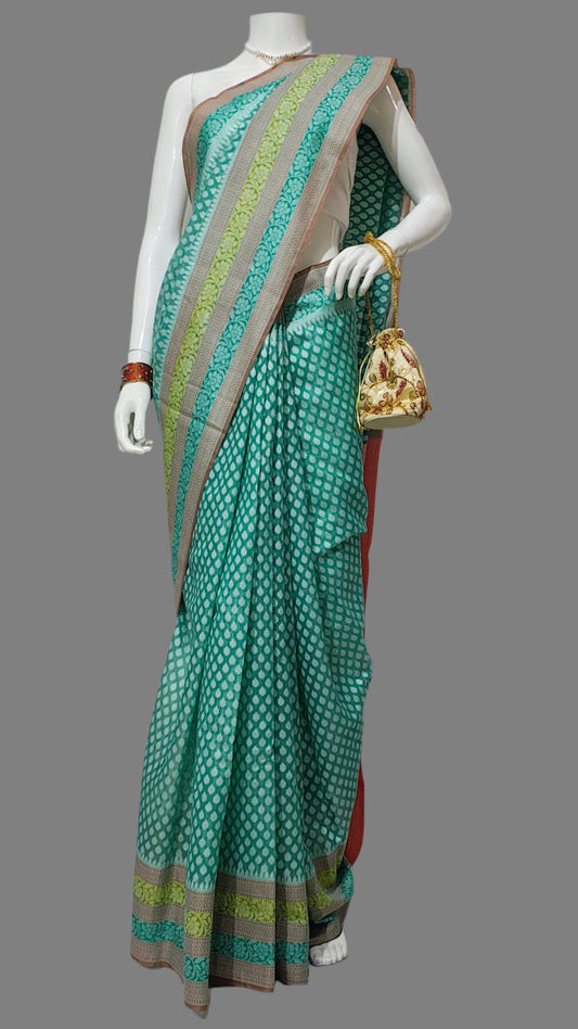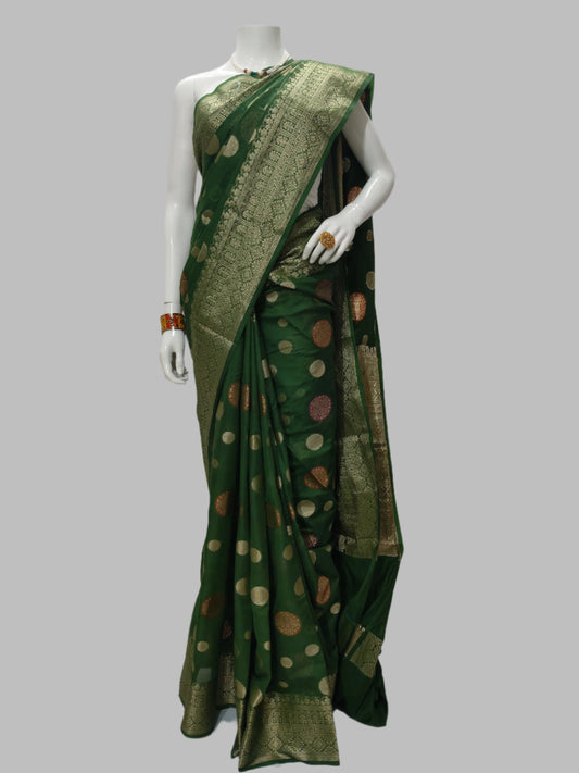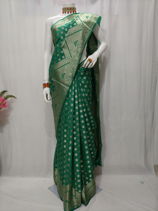 Georgette Silk Green Banarasi Saree With Unstitched Blouse