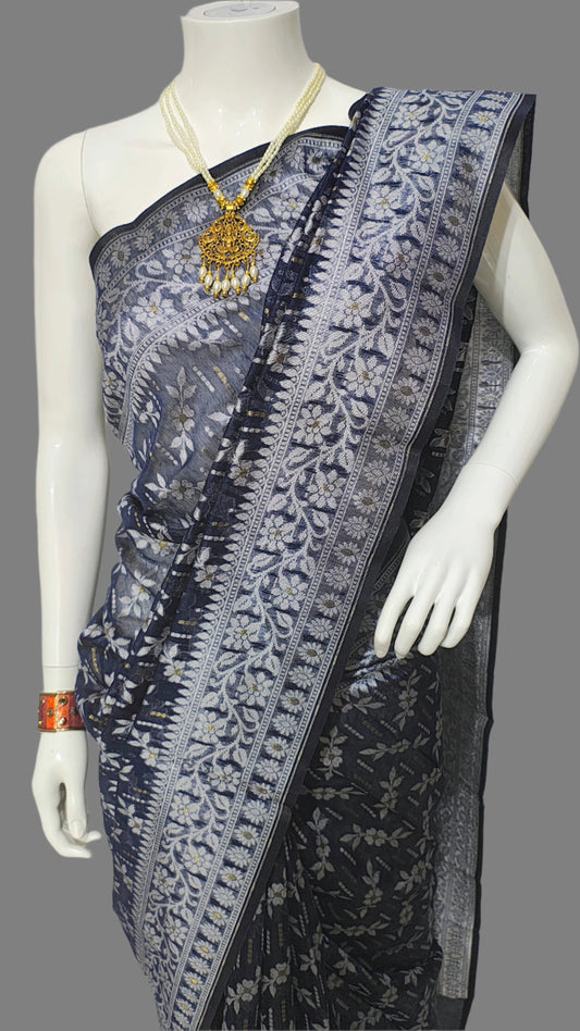 Cotton Silk Navy Blue Banarasi Saree With Unstitched Blouse