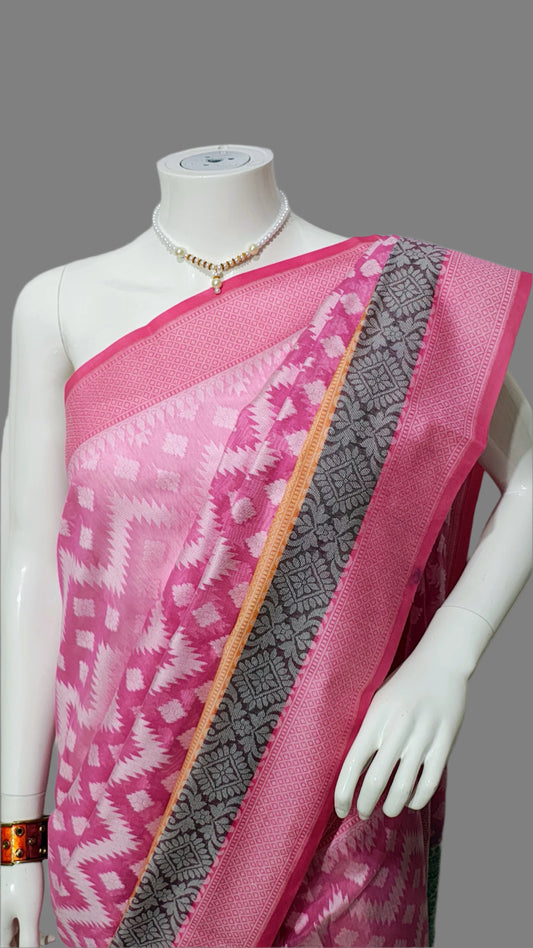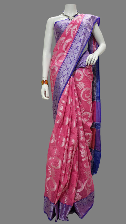 Cotton Silk Pink Banarasi Saree With Unstitched Blouse